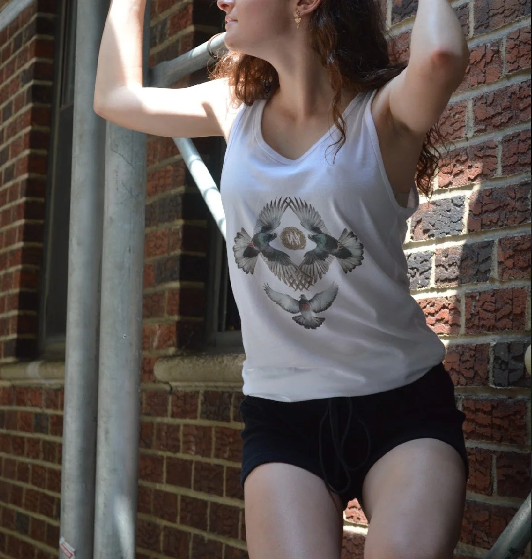 Shop › Pigeon Unisex Tank Image 1 of 3 Image 2 of 3 Image 3 of 3 Pigeon Unisex Tank $24.00 Size: Select Size XS S M L XL 2XL Color: Select Color White Quantity: Add To Cart Added!