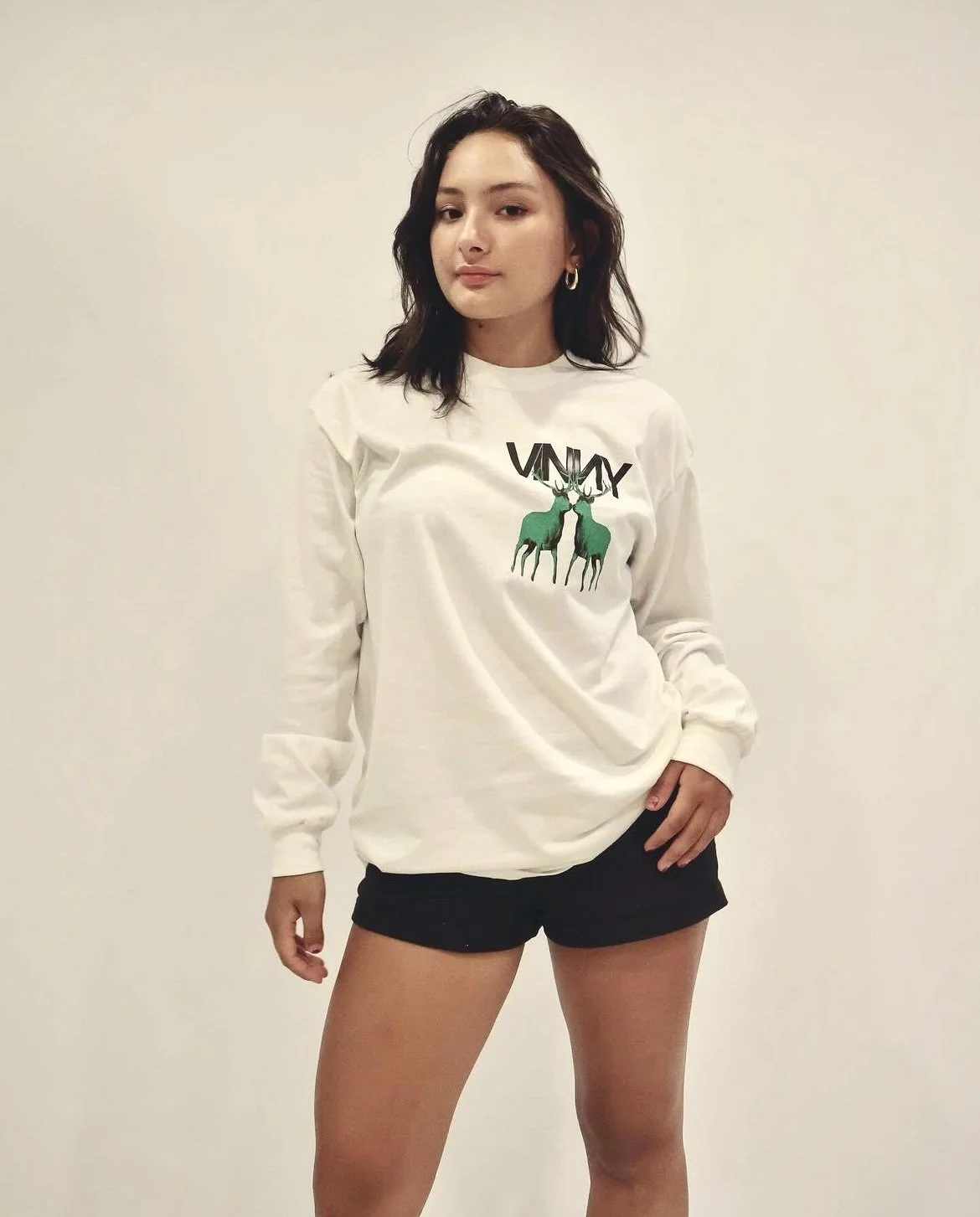 Shop › Deer VinNY Long Sleeve Image 1 of 4 Image 2 of 4 Image 3 of 4 Image 4 of 4 Deer VinNY Long Sleeve $38.00 Size: Select Size S M L XL 2XL Color: Select Color White Quantity: Add To Cart Added!